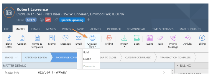 With Smokeball’s integration with Chicago Title, there’s no need for double data entry. Quickly order a title, receive a search package, and perform core title services in minutes.