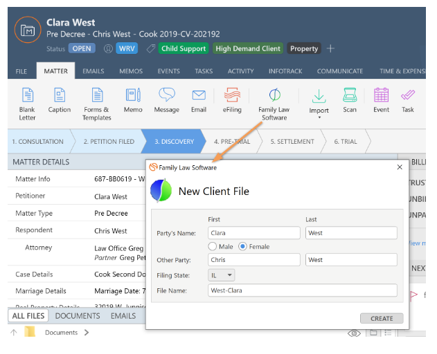 The Family Law Software and Smokeball integration allows you to more easily track financials, assets, and liabilities. You can sync information from Smokeball to Family Law Software, and automatically save any documents produced back to the matter.