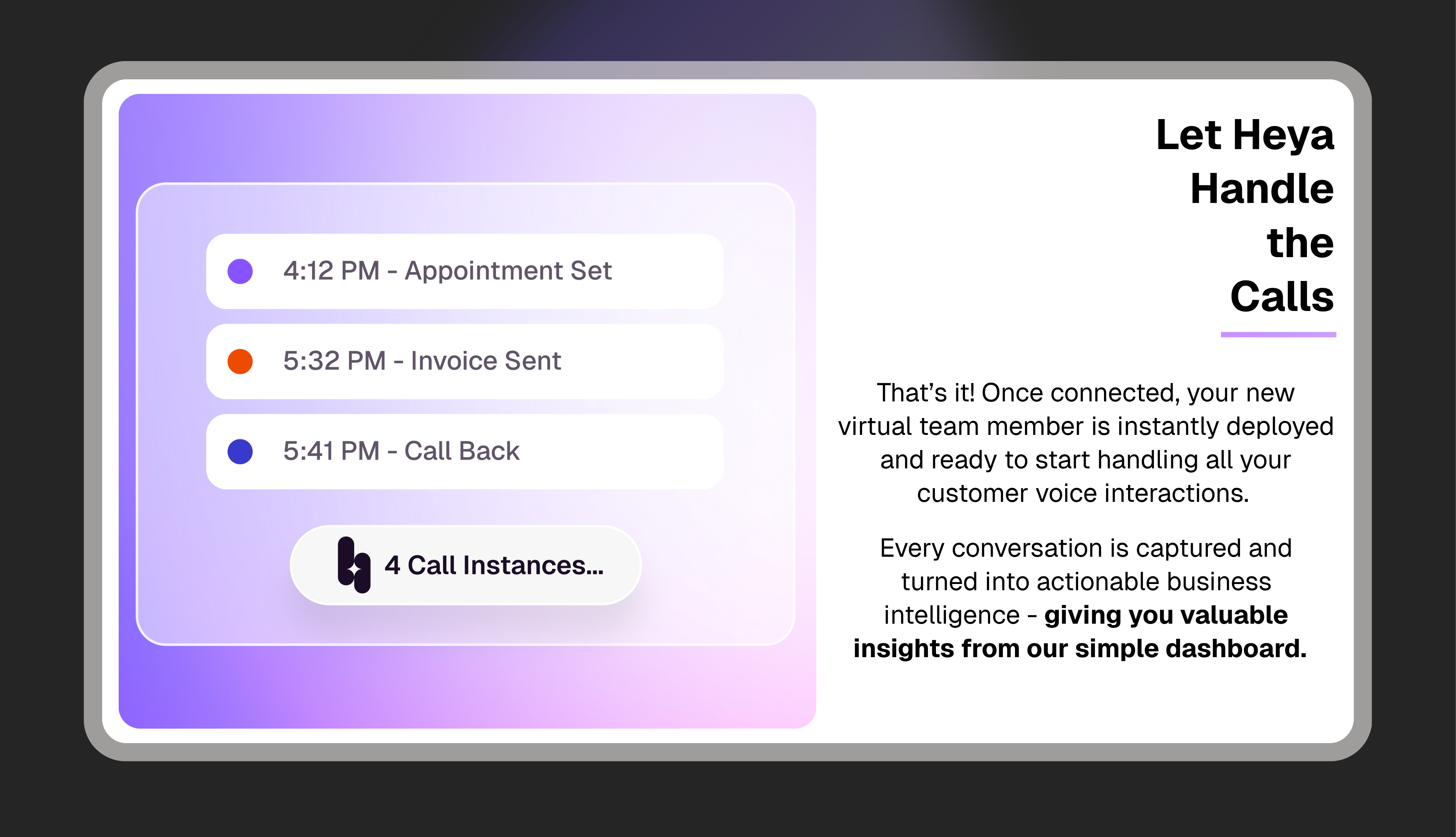 Every call Heya handles can be transcribed and summarised. You'll never miss the details.