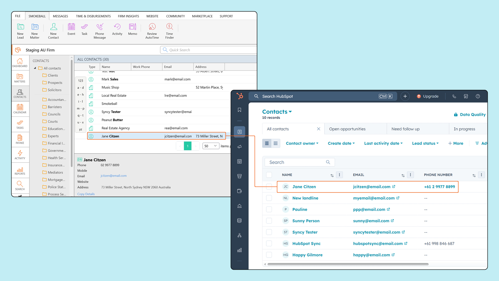 Connect HubSpot and Smokeball to reduce manual data entry and maintain consistent contact records. Choose the sync direction that best fits your firm's workflow: send contacts to HubSpot for marketing or to Smokeball to support intake.
