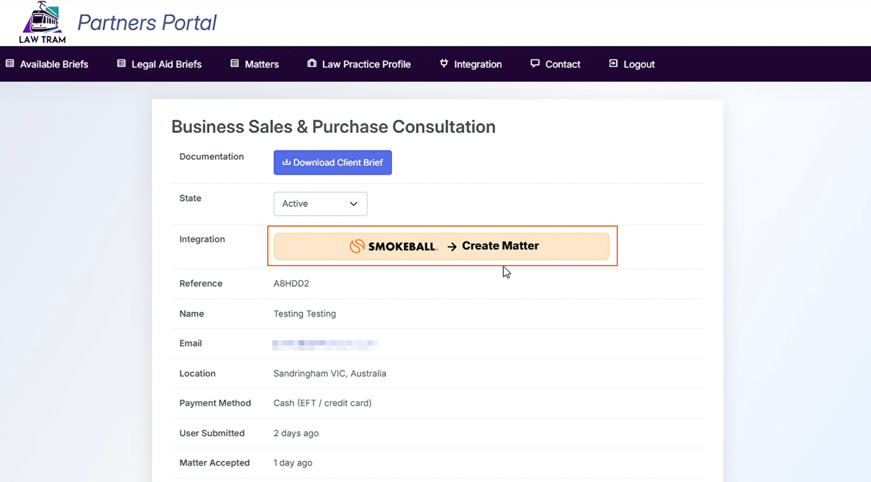 Law Tram integrates seamlessly with Smokeball, making it easy to create a new matter with just a few clicks when you connect with a new client.