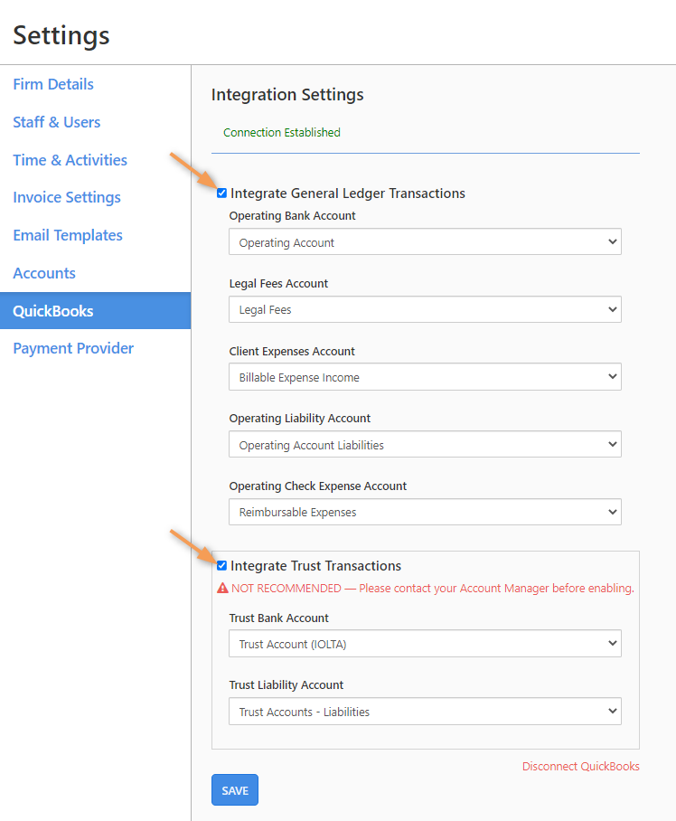 The Quickbooks Online and Smokeball integration makes tracking receipts, income, bank transactions, and more feel simple.