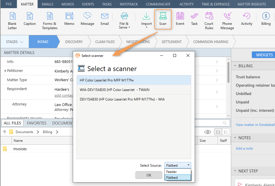 Quickly and easily scan documents directly into your Smokeball matters with ScanSnap Scanners.